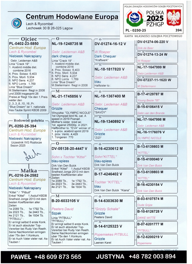 więcej info.w rodowodzie i na stronie Benzing Live.oneloftrace.live/lofts/260?season=2458&tab=flights
