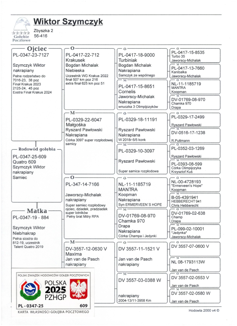 więcej info.w rodowodzie i na stronie Benzing Live.oneloftrace.live/lofts/260?season=2458&tab=flights