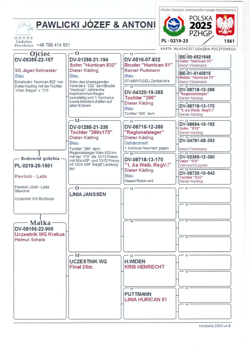 więcej info.w rodowodzie i na stronie Benzing Live.oneloftrace.live/lofts/260?season=2458&tab=flights