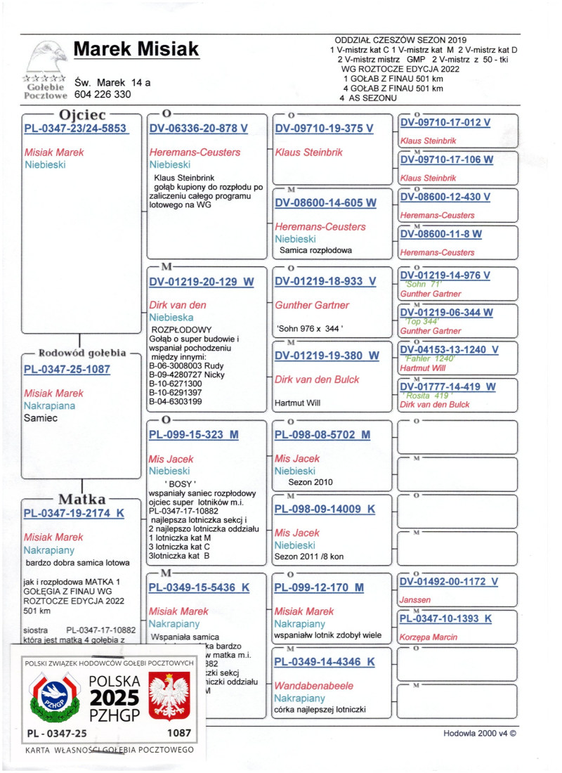 PL-0347-25-1087 WG ROZTOCZE FINAŁ 42poz.505km Extra Finał 40poz.500km 2x500km