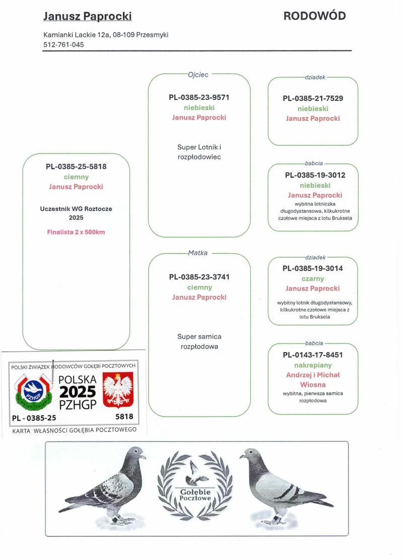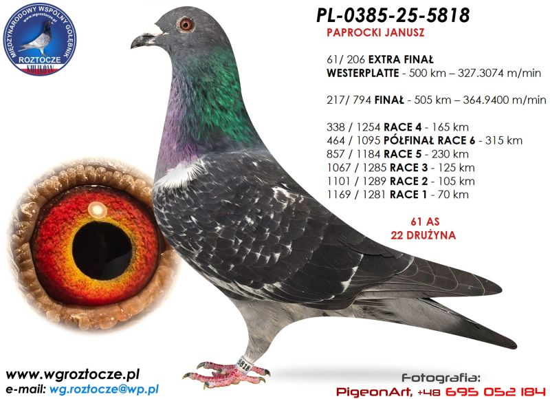 PL-0385-25-5818 WG ROZTOCZE FINAŁ 217poz.505km Extra Finał 61poz.500km 61AS 22 Drużyna 2x500km