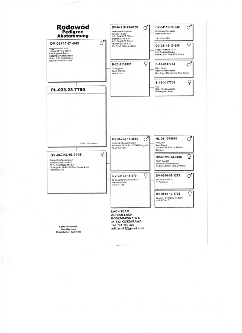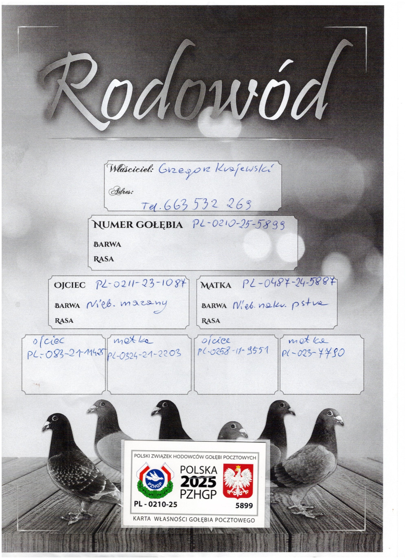 więcej info.w rodowodzie i na stronie Benzing Live.oneloftrace.live/lofts/260?season=2458&tab=flights