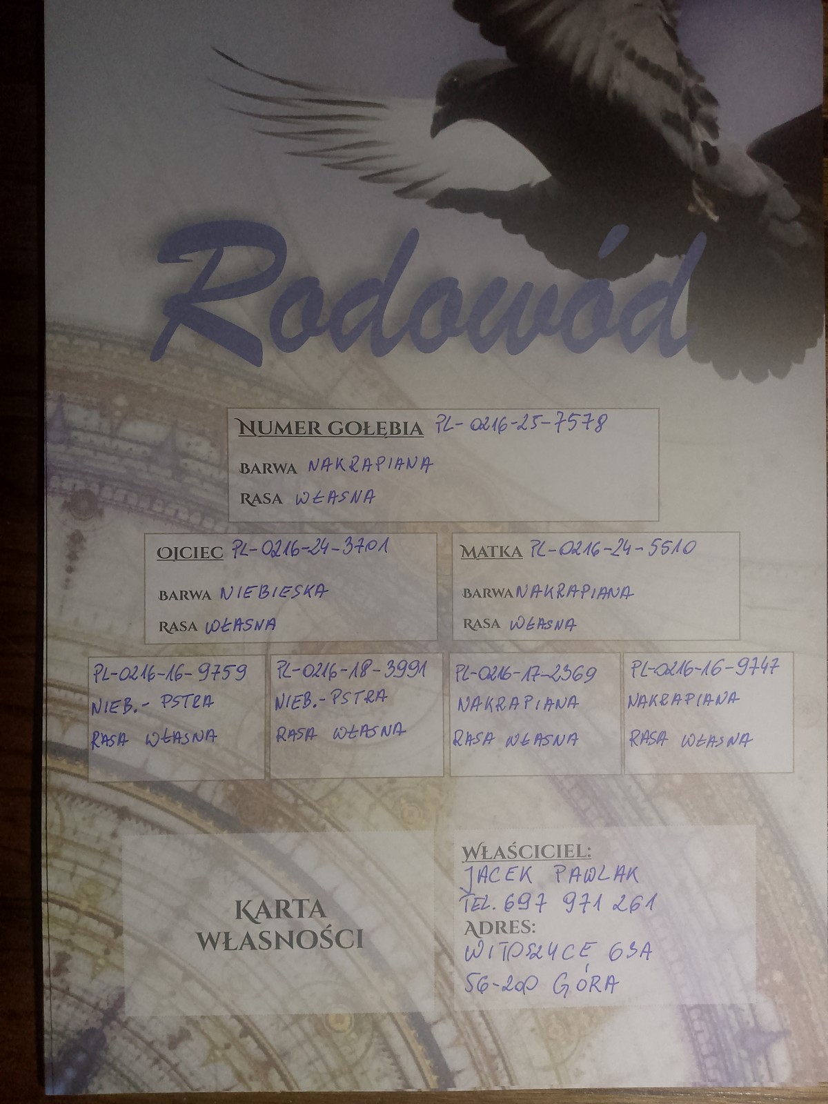 | Lot | Data | Dystans [km] | Ilość gołębi | Pozycja | Prędkość [m/min] |