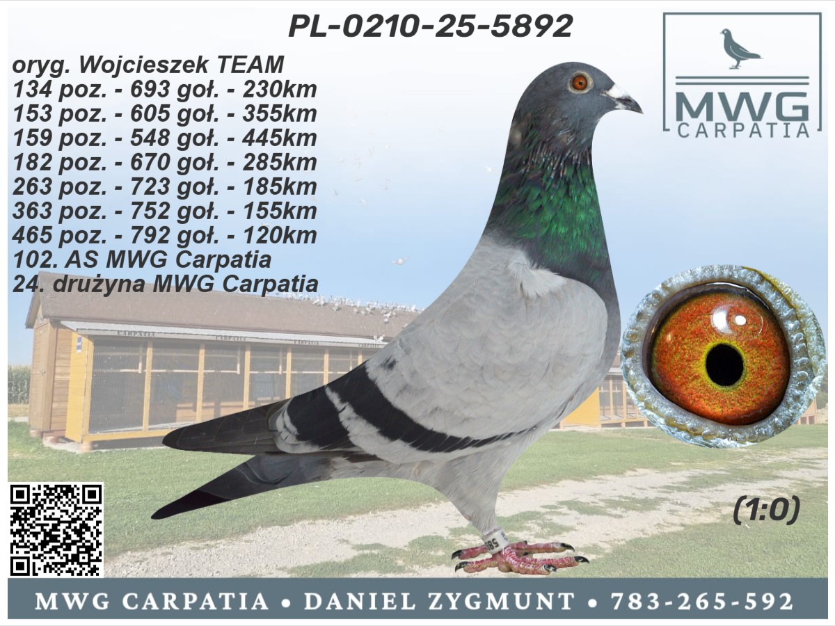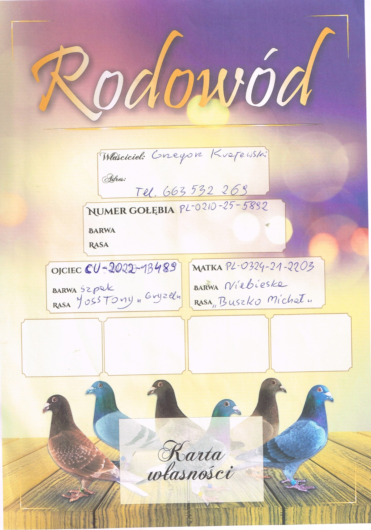 | Lot | Data | Dystans [km] | Ilość gołębi | Pozycja | Prędkość [m/min] |