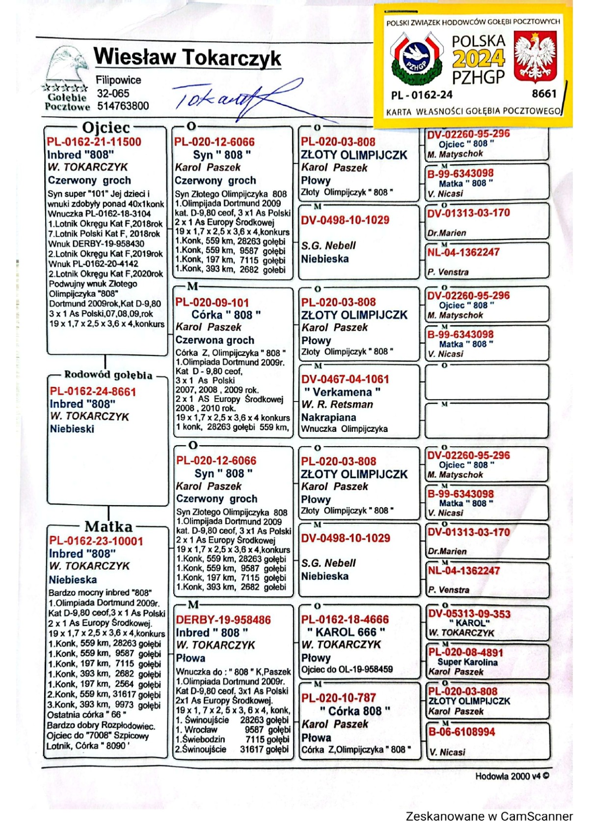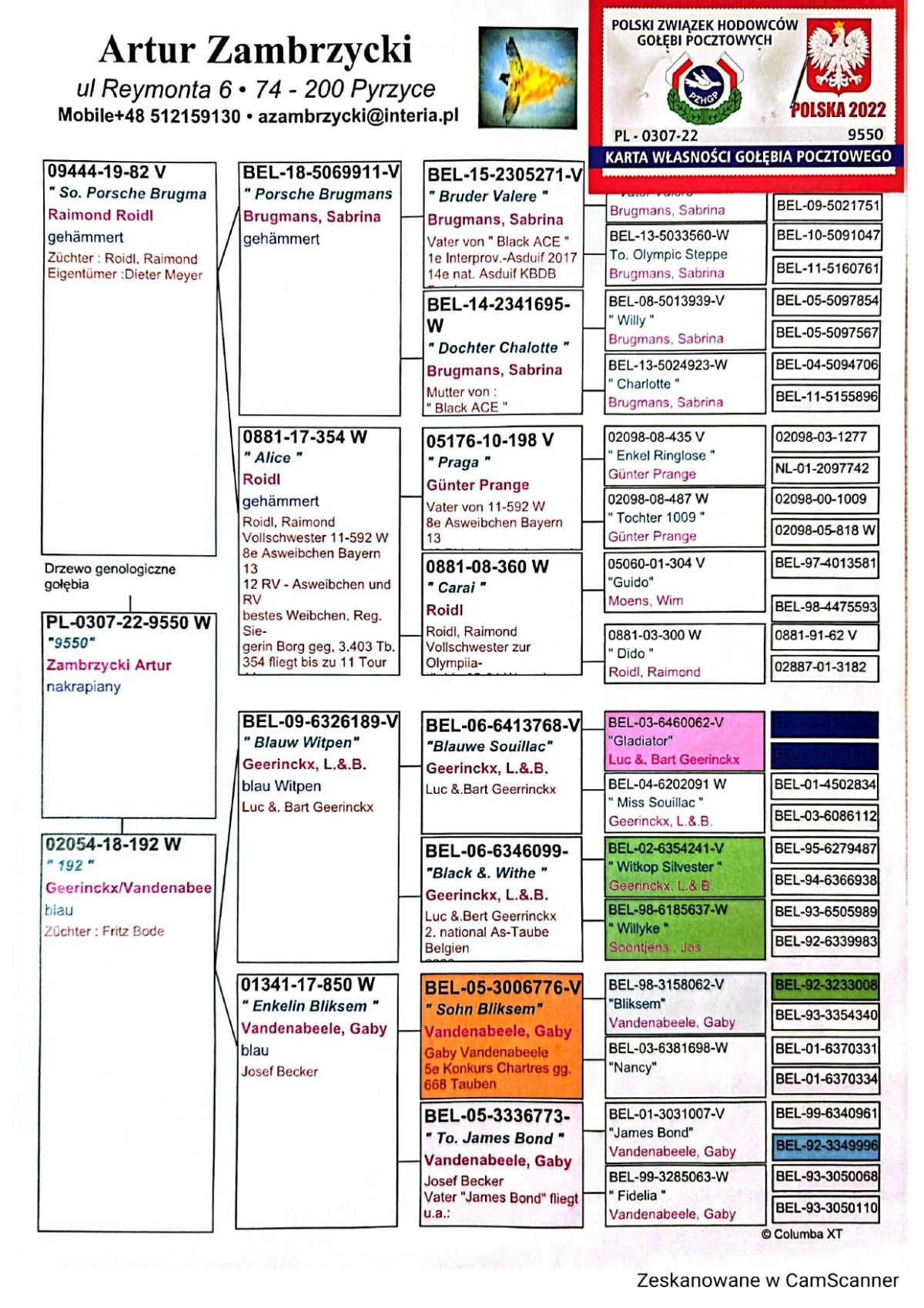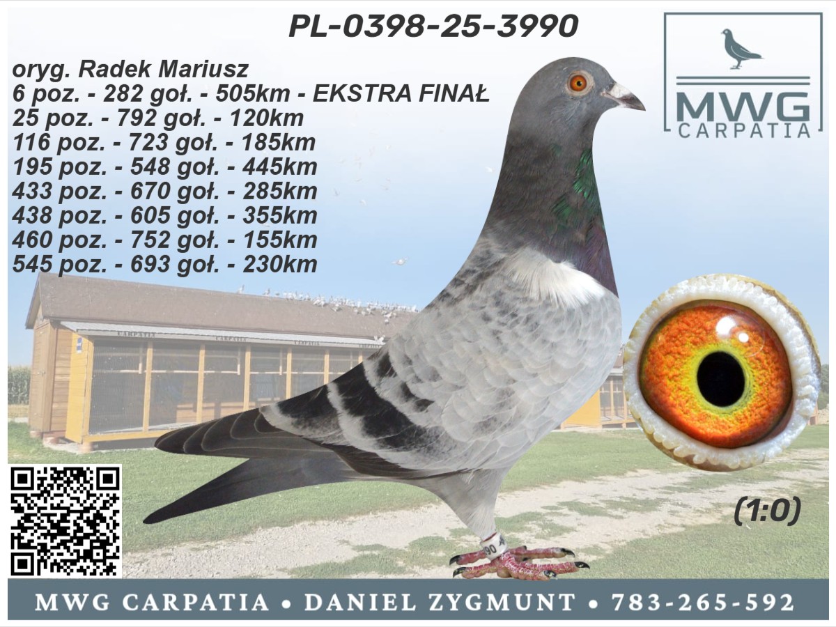 | Lot | Data | Dystans [km] | Ilość gołębi | Pozycja | Prędkość [m/min] |