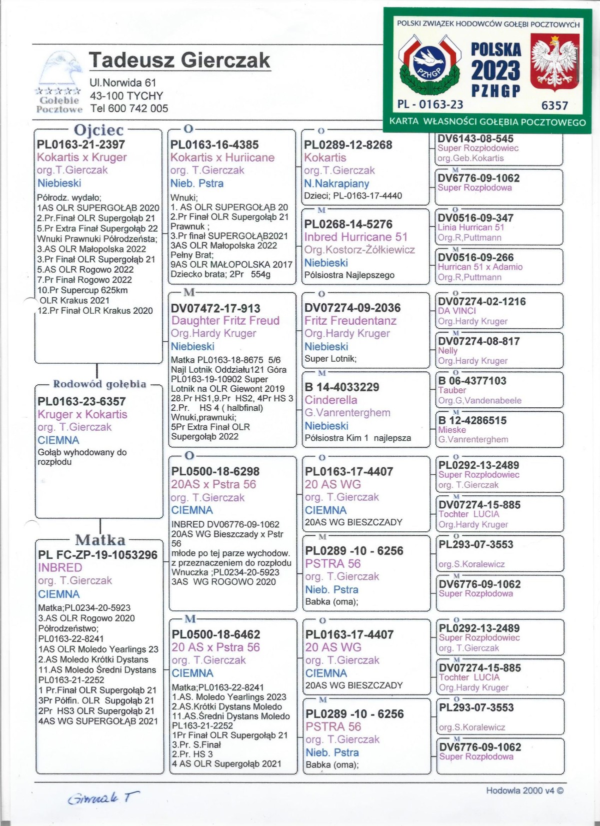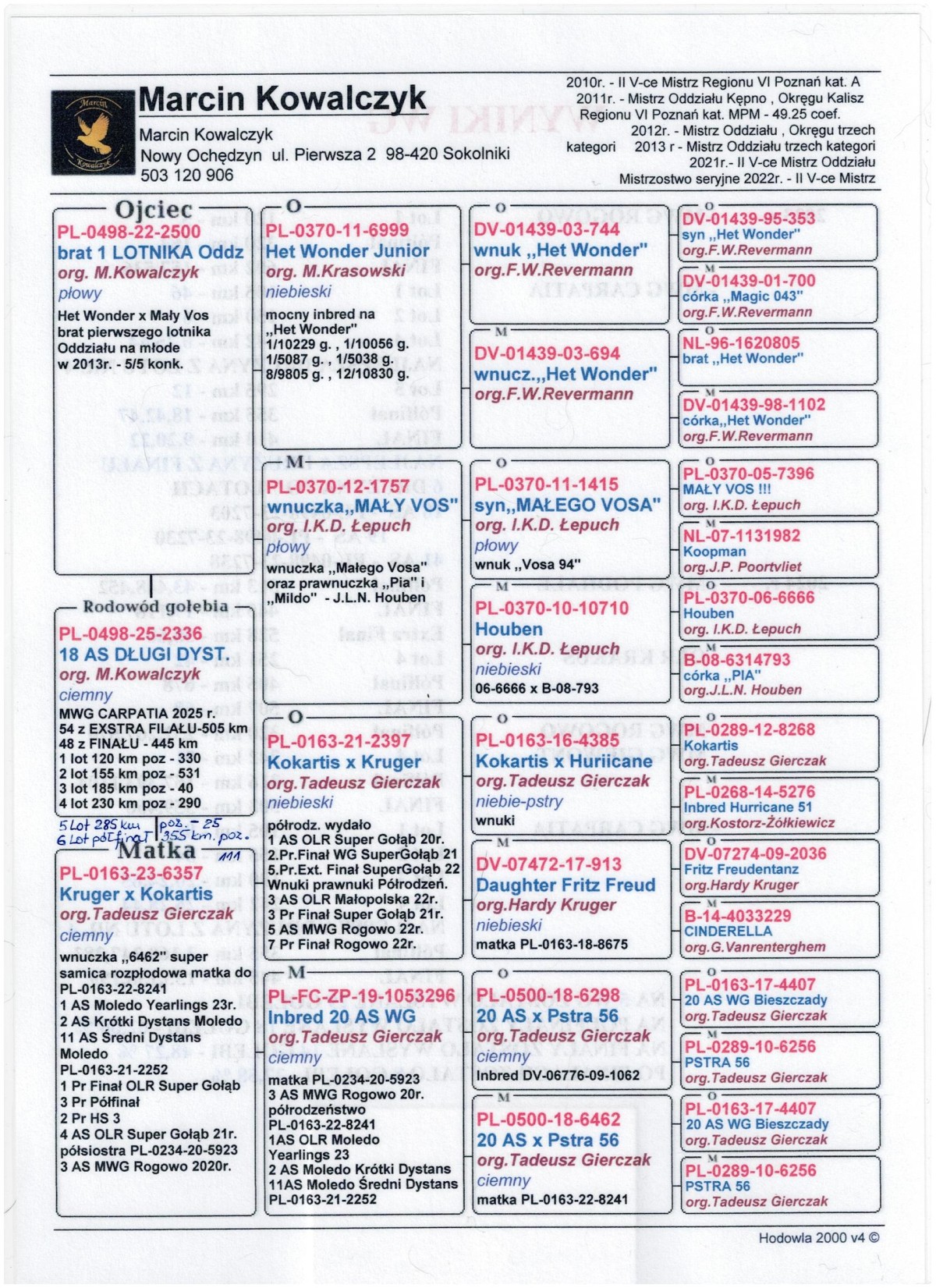 | Lot | Data | Dystans [km] | Ilość gołębi | Pozycja | Prędkość [m/min] |