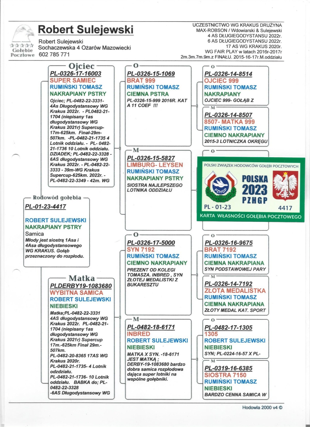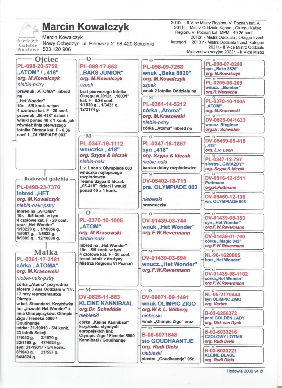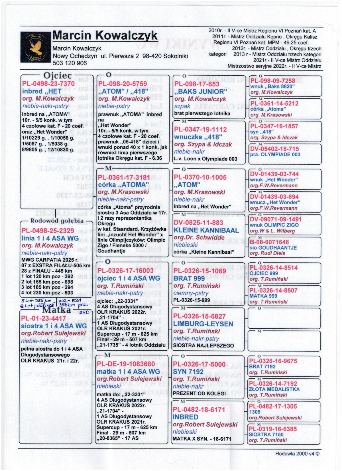 | Lot | Data | Dystans [km] | Ilość gołębi | Pozycja | Prędkość [m/min] |