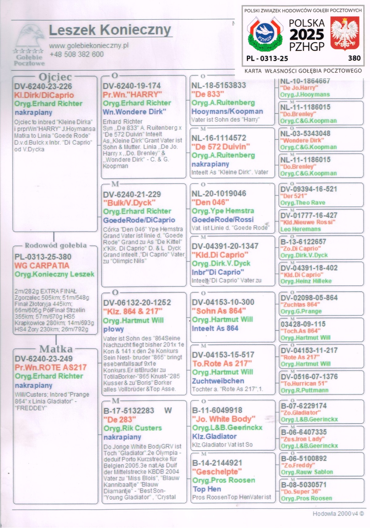 Lot | Data | Dystans [km] | Ilość gołębi | Pozycja | Prędkość [m/min] |