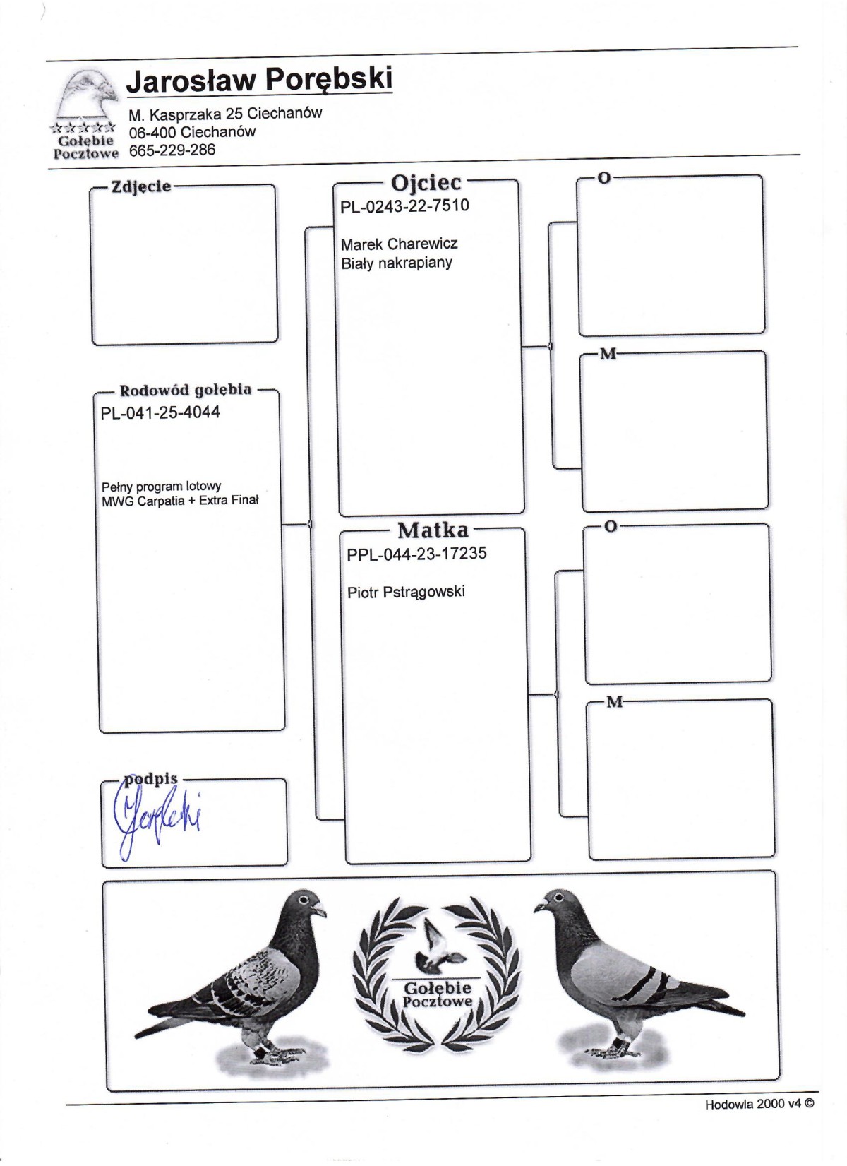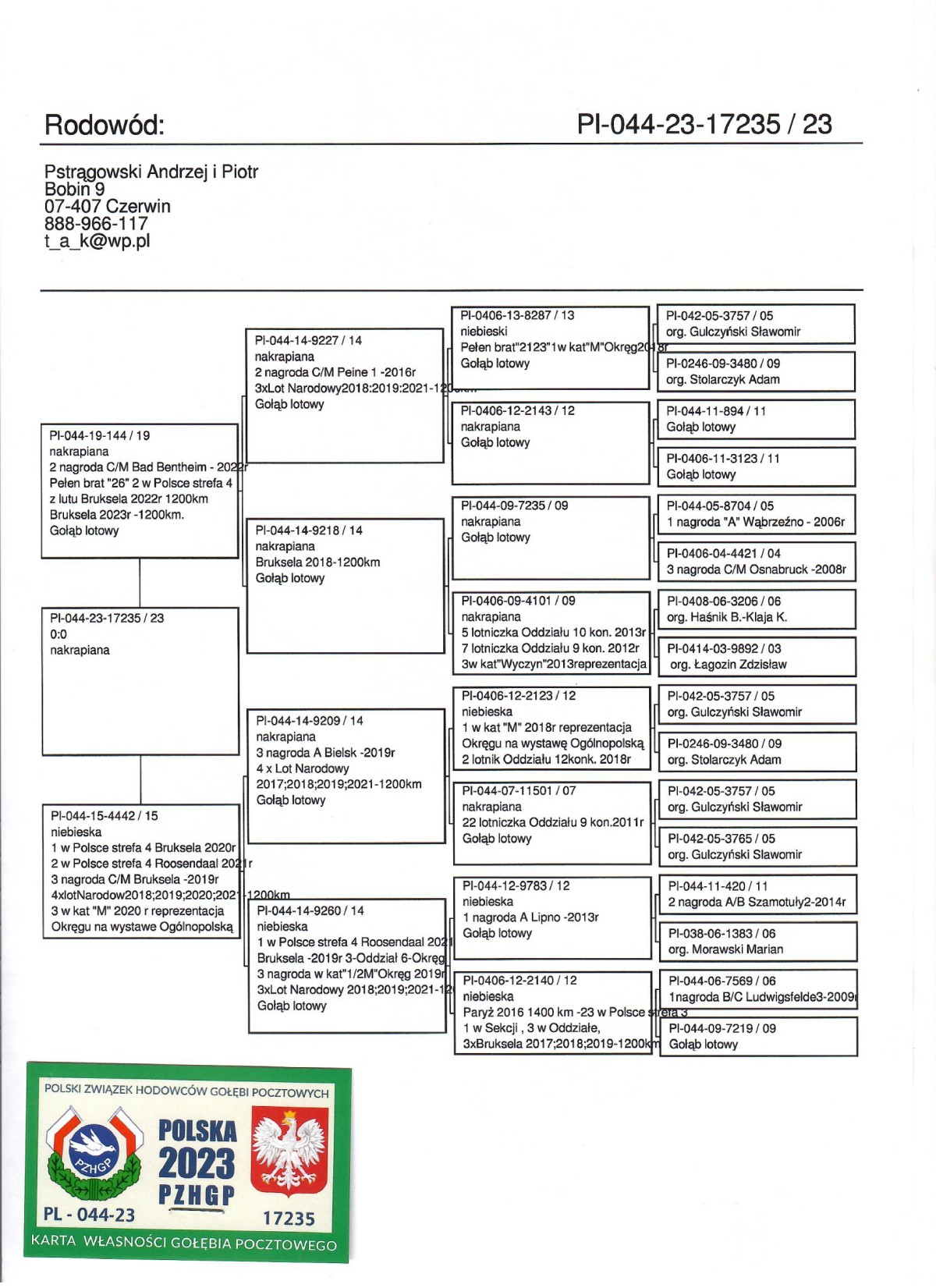 Lot | Data | Dystans [km] | Ilość gołębi | Pozycja | Prędkość [m/min] |