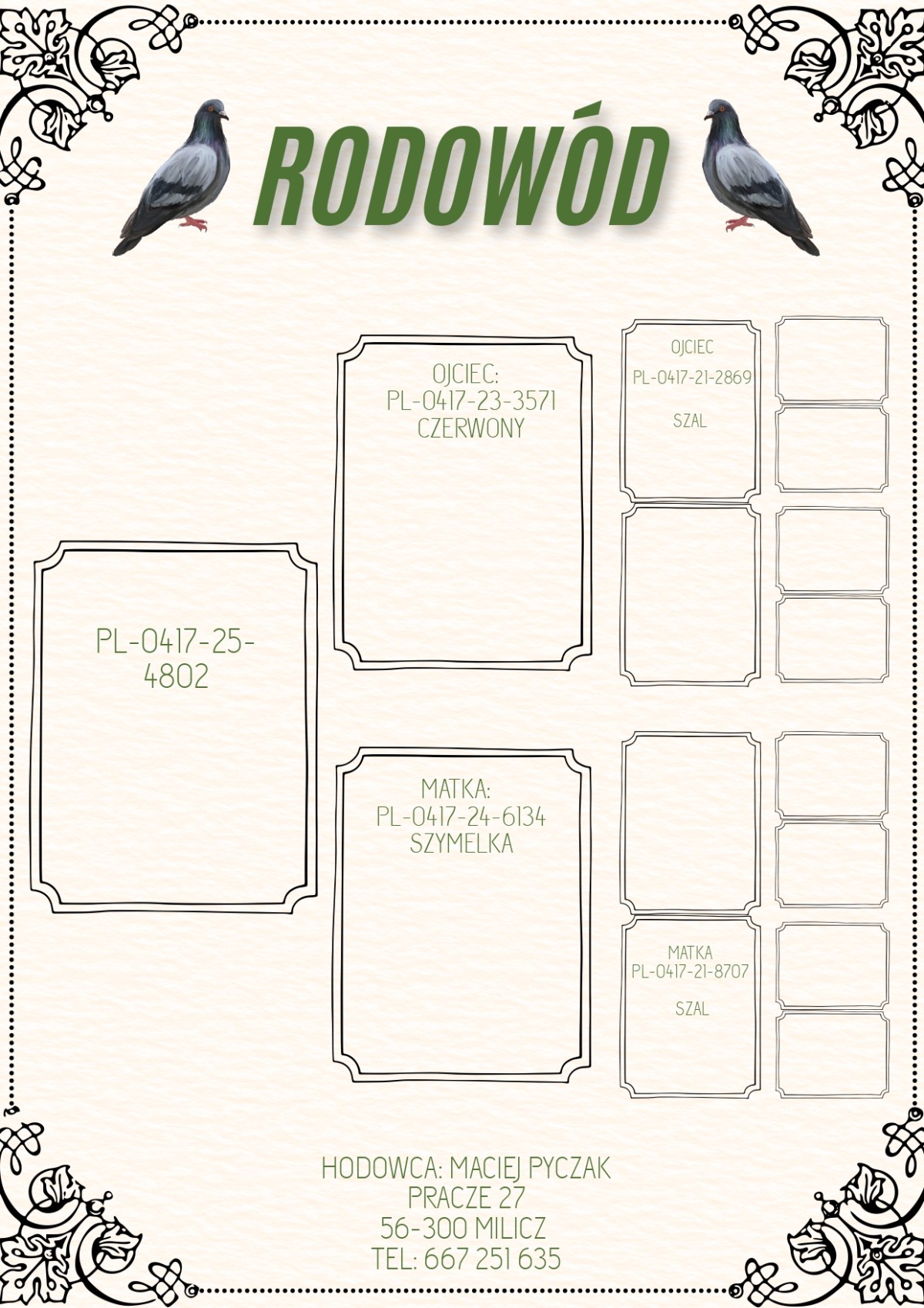 Lot | Data | Dystans [km] | Ilość gołębi | Pozycja | Prędkość [m/min] |