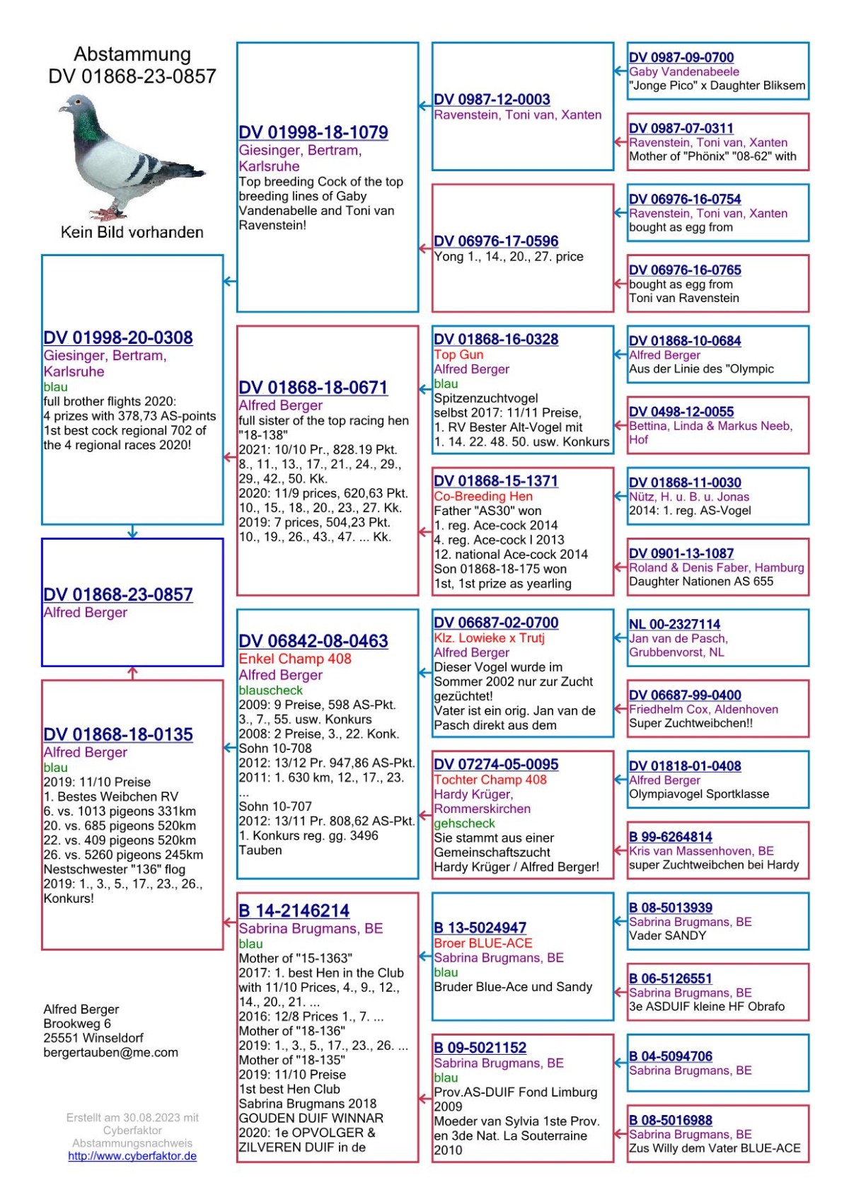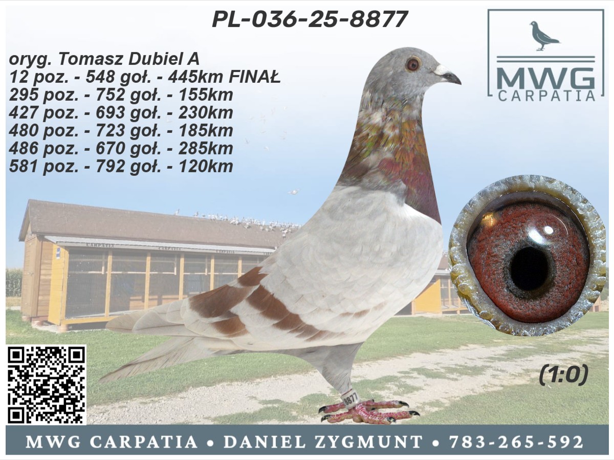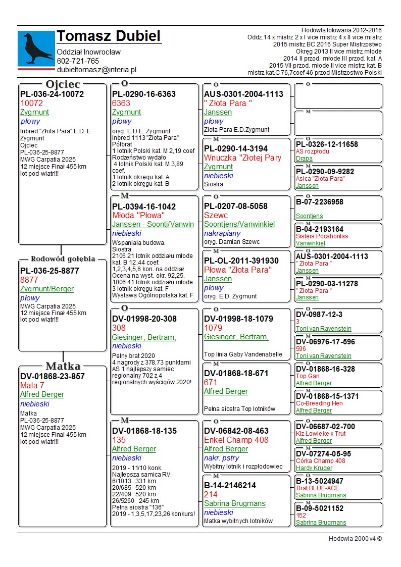 | Lot | Data | Dystans [km] | Ilość gołębi | Pozycja | Prędkość [m/min] |