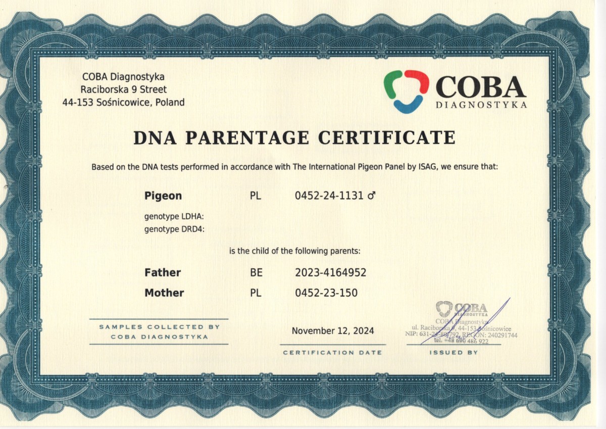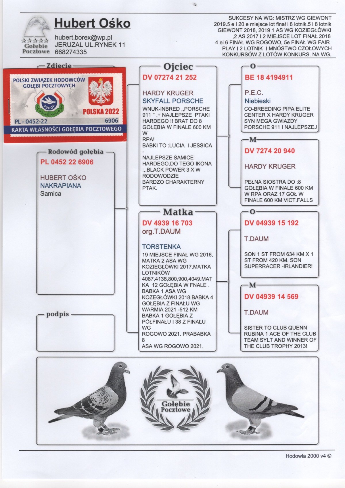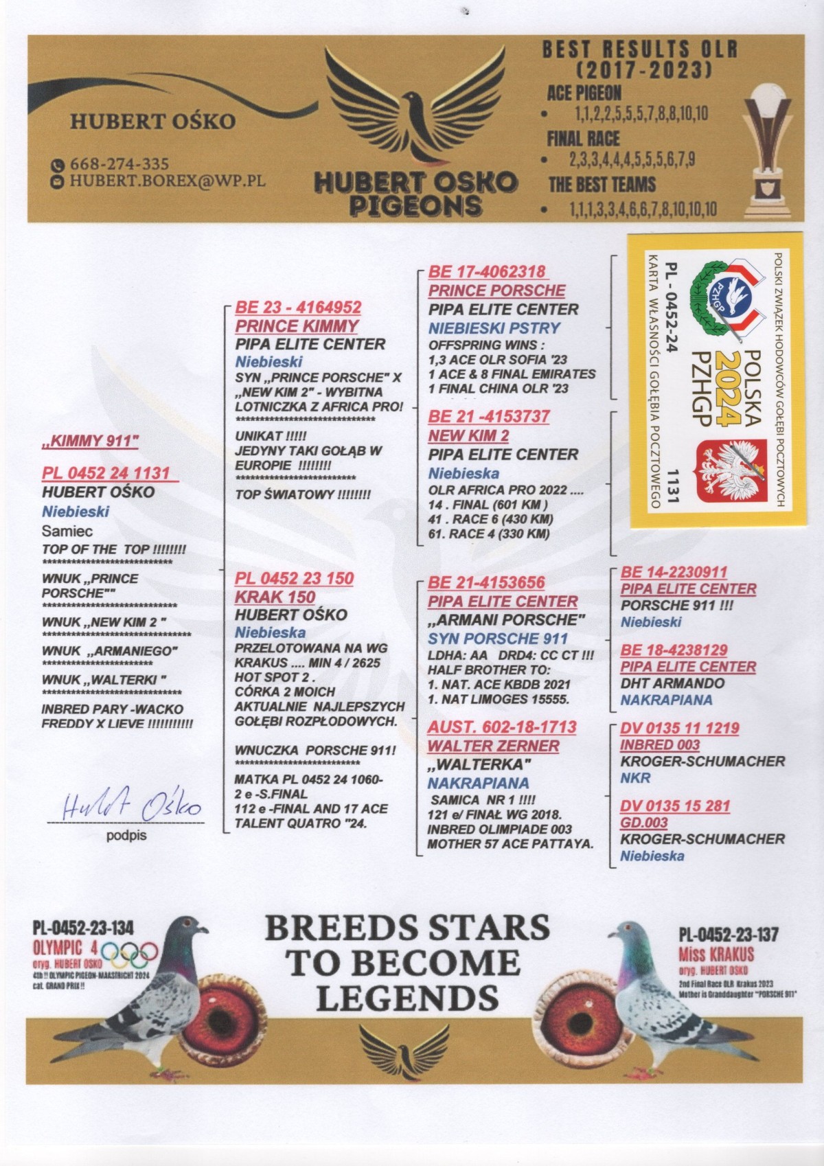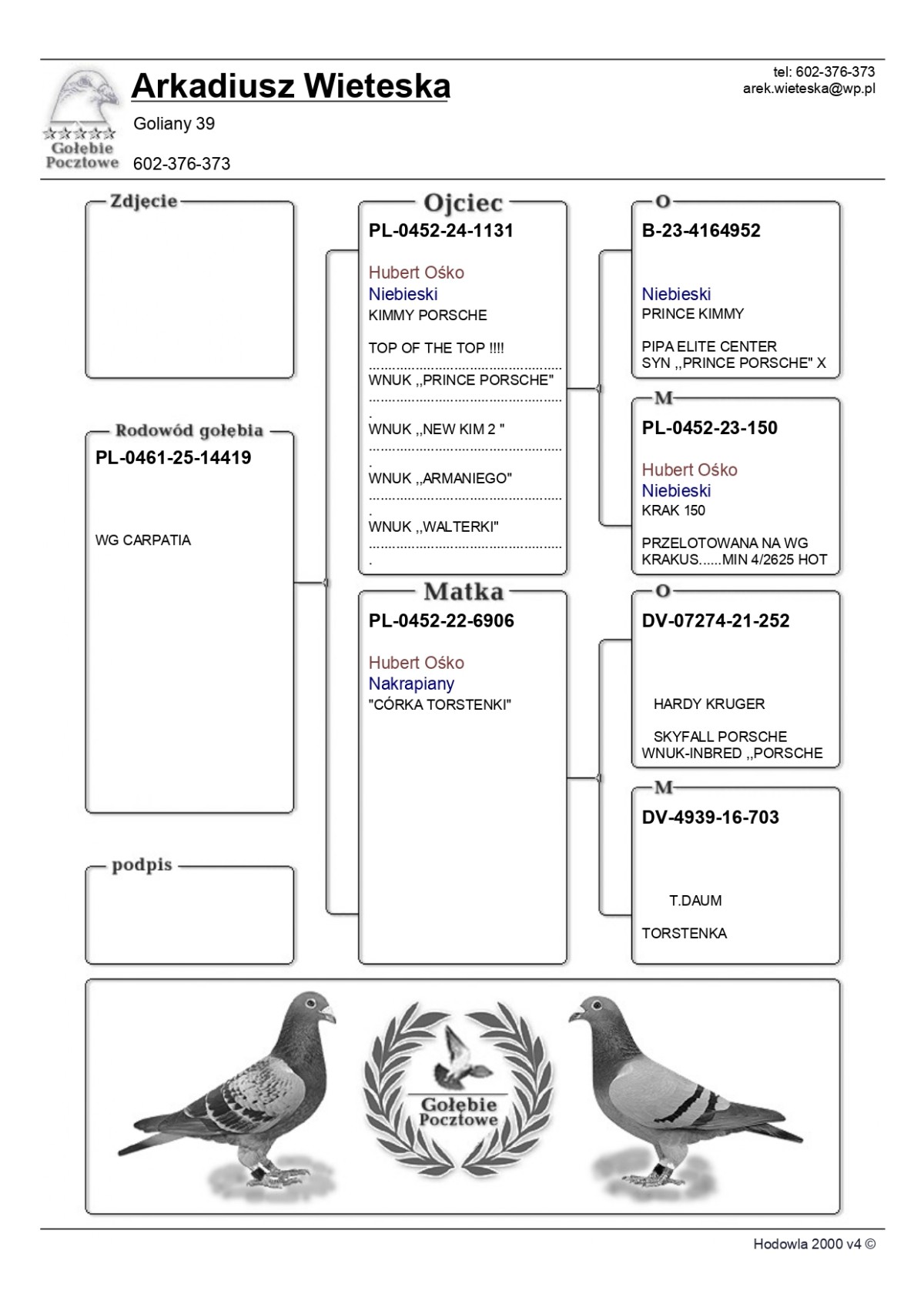 | Lot | Data | Dystans [km] | Ilość gołębi | Pozycja | Prędkość [m/min] |