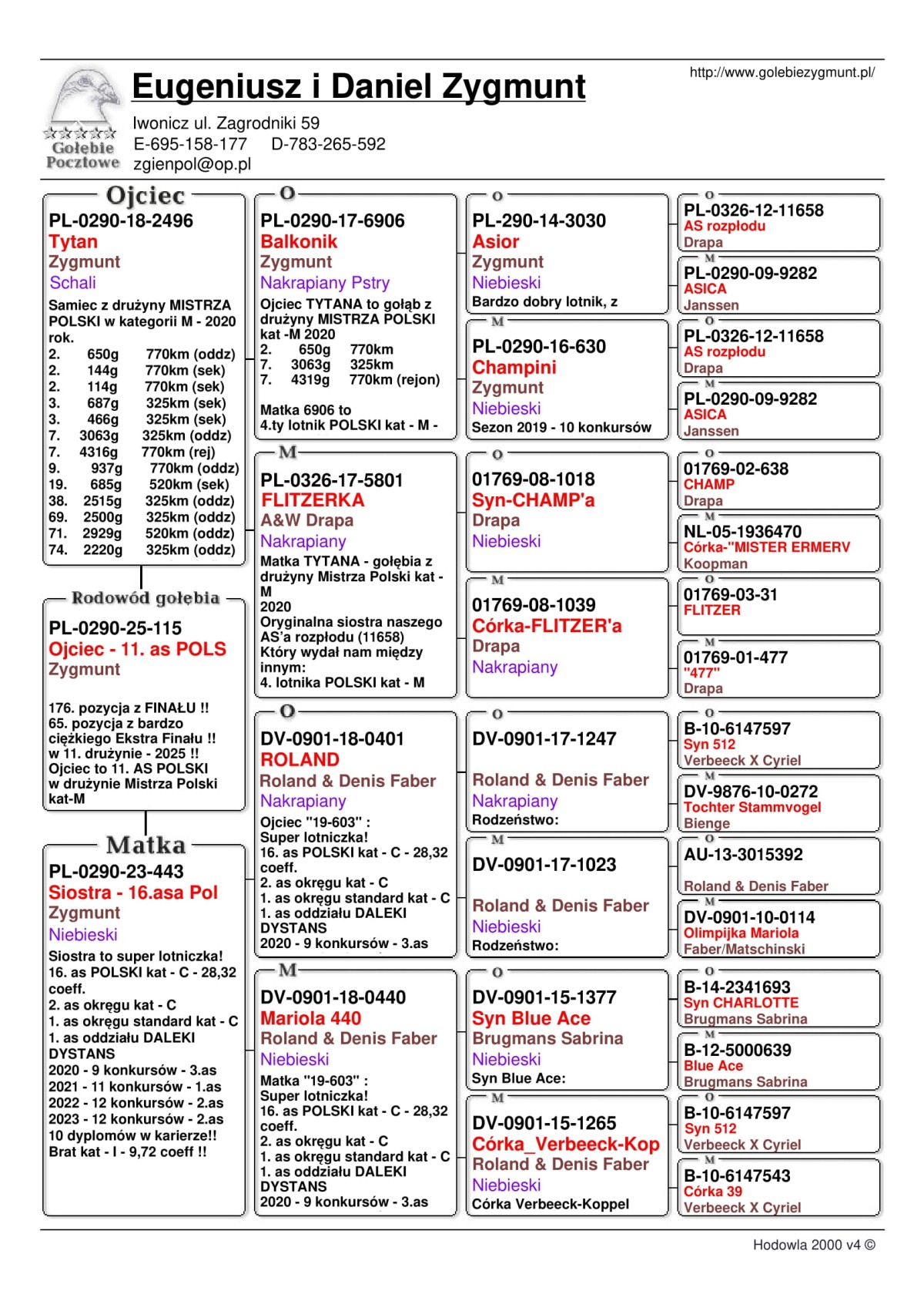 Lot | Data | Dystans [km] | Ilość gołębi | Pozycja | Prędkość [m/min] |