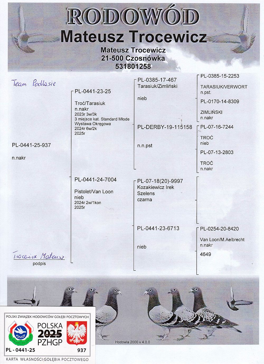Lot | Data | Dystans [km] | Ilość gołębi | Pozycja | Prędkość [m/min] |