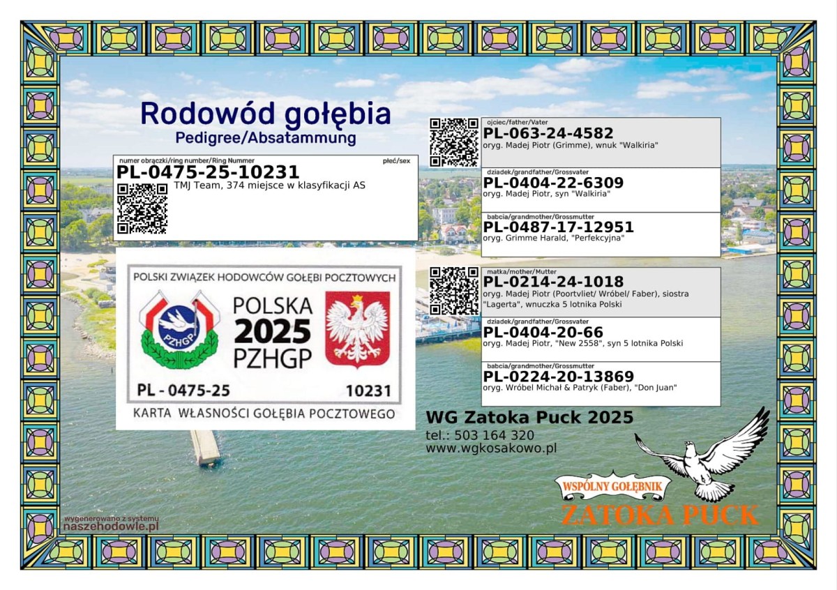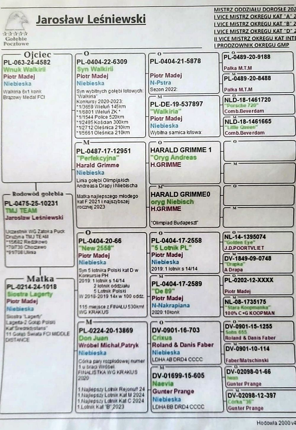 Lot | Data | Dystans [km] | Ilość gołębi | Pozycja | Prędkość [m/min] |