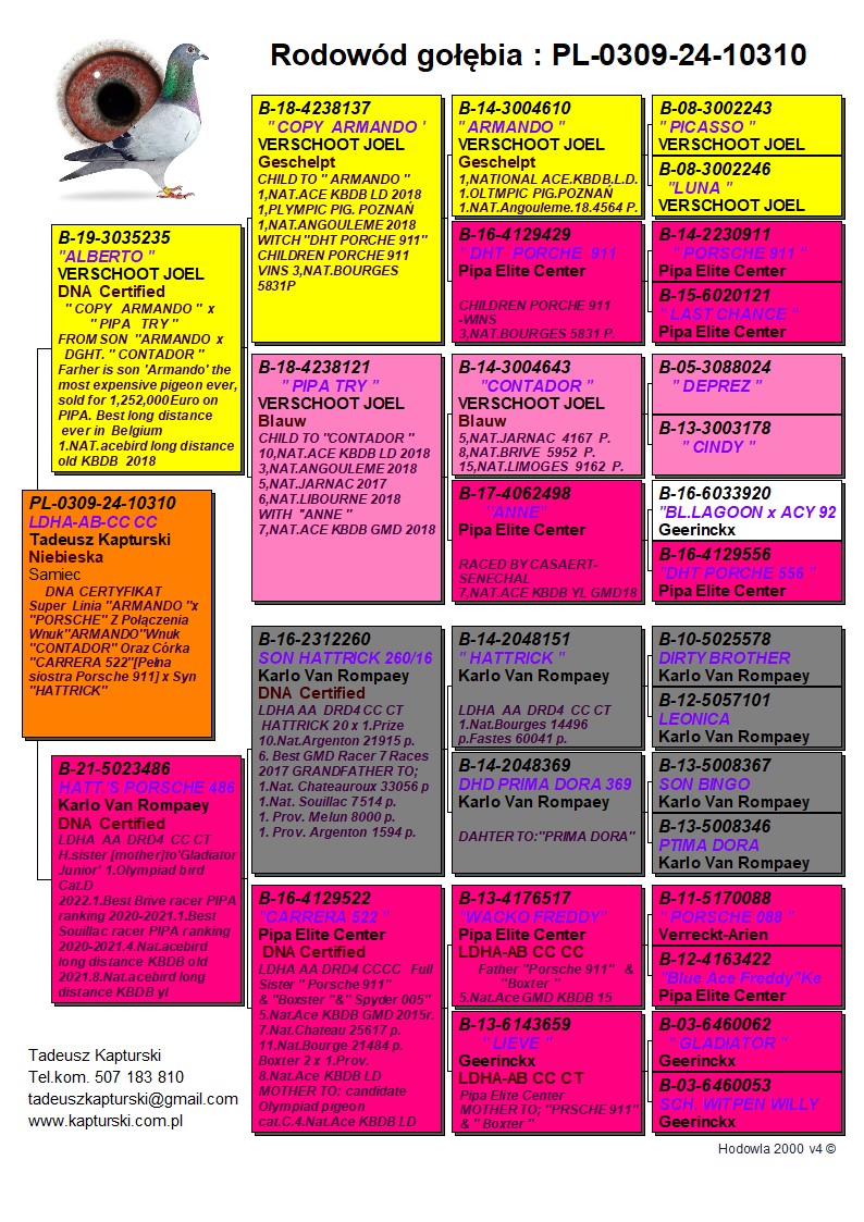 Oryginalny gołąb z hodowli Tadeusza Kapturskiego. Szczegóły pochodzenia w rodowodzie. Więcej informacji pod nr tel.: 507183810 ***transport kurier 165 zł ***NA ŻYCZENIE CERTYFIKAT DNA