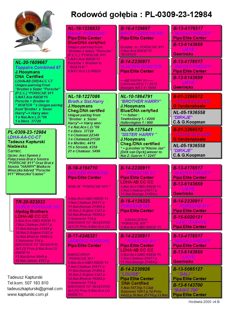 Oryginalny gołąb z hodowli Tadeusza Kapturskiego. Szczegóły pochodzenia w rodowodzie. Więcej informacji pod nr tel.: 507183810 ***transport kurier 165 zł ***NA ŻYCZENIE CERTYFIKAT DNA