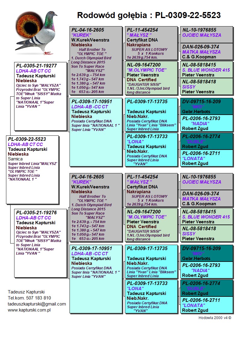 Oryginalny gołąb z hodowli Tadeusza Kapturskiego. Szczegóły pochodzenia w rodowodzie. Więcej informacji pod nr tel.: 507183810 ***transport kurier 165 zł