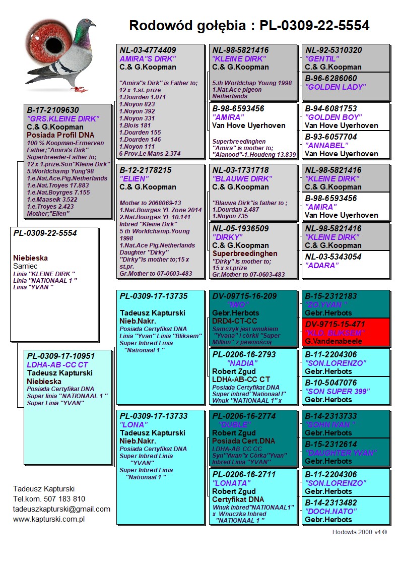 Oryginalny gołąb z hodowli Tadeusza Kapturskiego. Szczegóły pochodzenia w rodowodzie. Więcej informacji pod nr tel.: 507183810 ***transport kurier 165 zł ***NA ŻYCZENIE CERTYFIKAT DNA