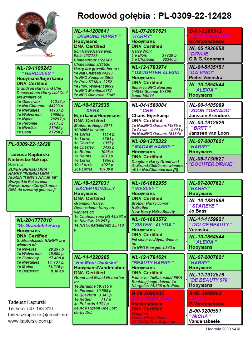 Oryginalny gołąb z hodowli Tadeusza Kapturskiego. Szczegóły pochodzenia w rodowodzie. Więcej informacji pod nr tel.: 507183810 ***transport kurier 165 zł ***NA ŻYCZENIE CERTYFIKAT DNA