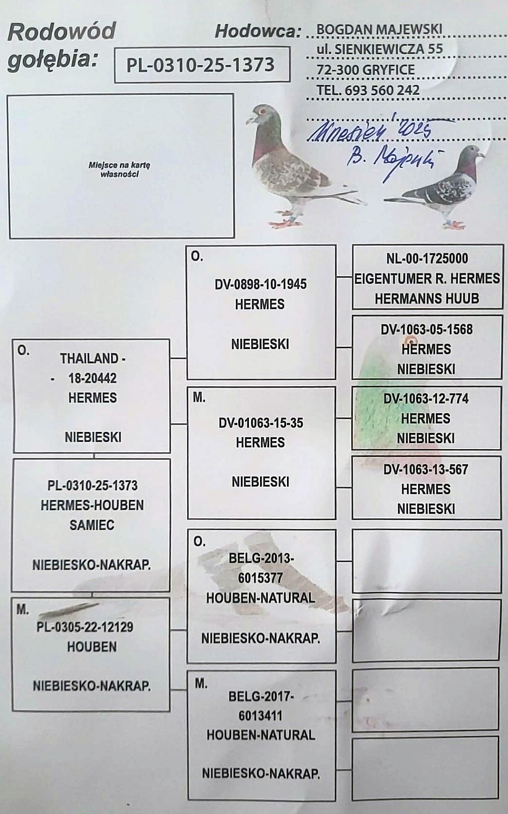 Lot | Data | Dystans [km] | Ilość gołębi | Pozycja | Prędkość [m/min] |