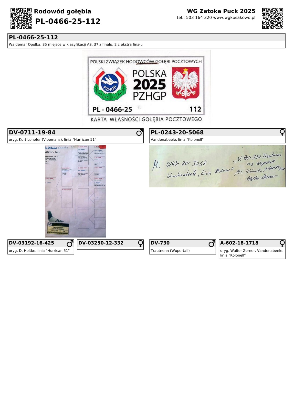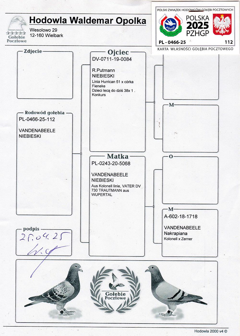 Lot | Data | Dystans [km] | Ilość gołębi | Pozycja | Prędkość [m/min] |