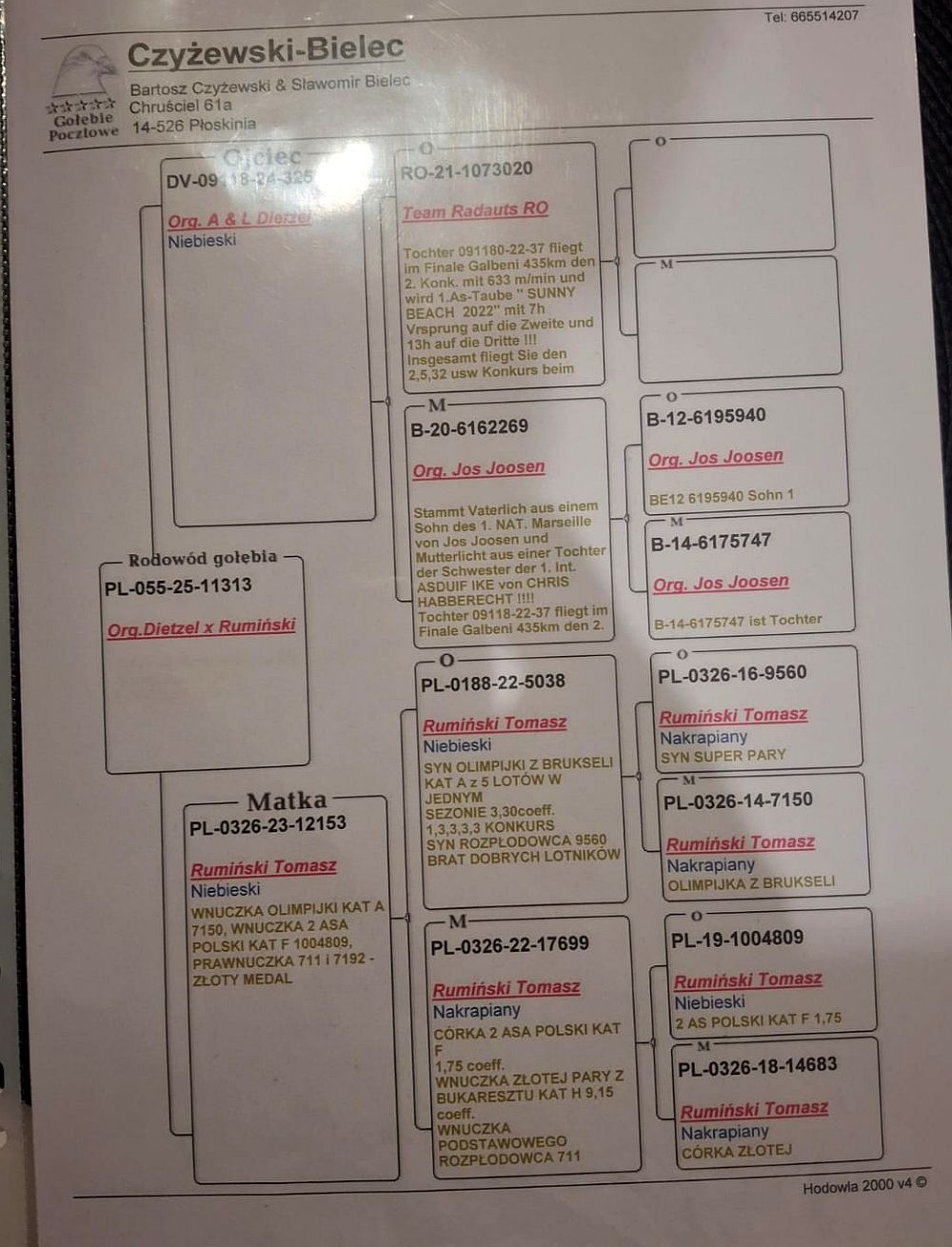 Lot | Data | Dystans [km] | Ilość gołębi | Pozycja | Prędkość [m/min] |