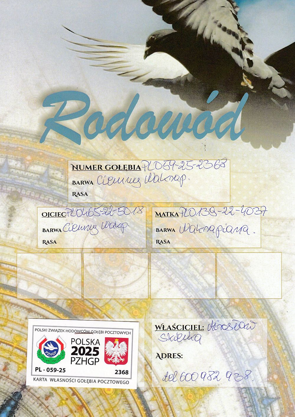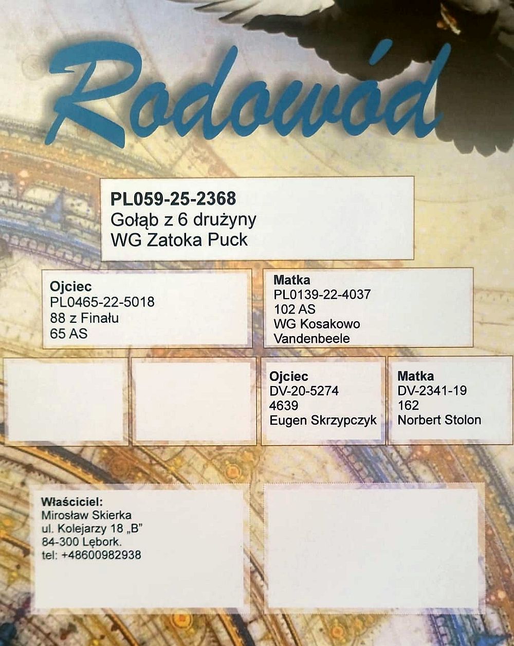 Lot | Data | Dystans [km] | Ilość gołębi | Pozycja | Prędkość [m/min] |