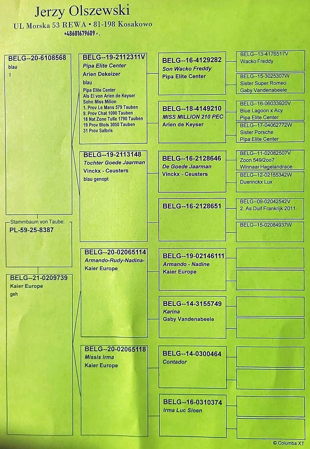 Lot | Data | Dystans [km] | Ilość gołębi | Pozycja | Prędkość [m/min] |