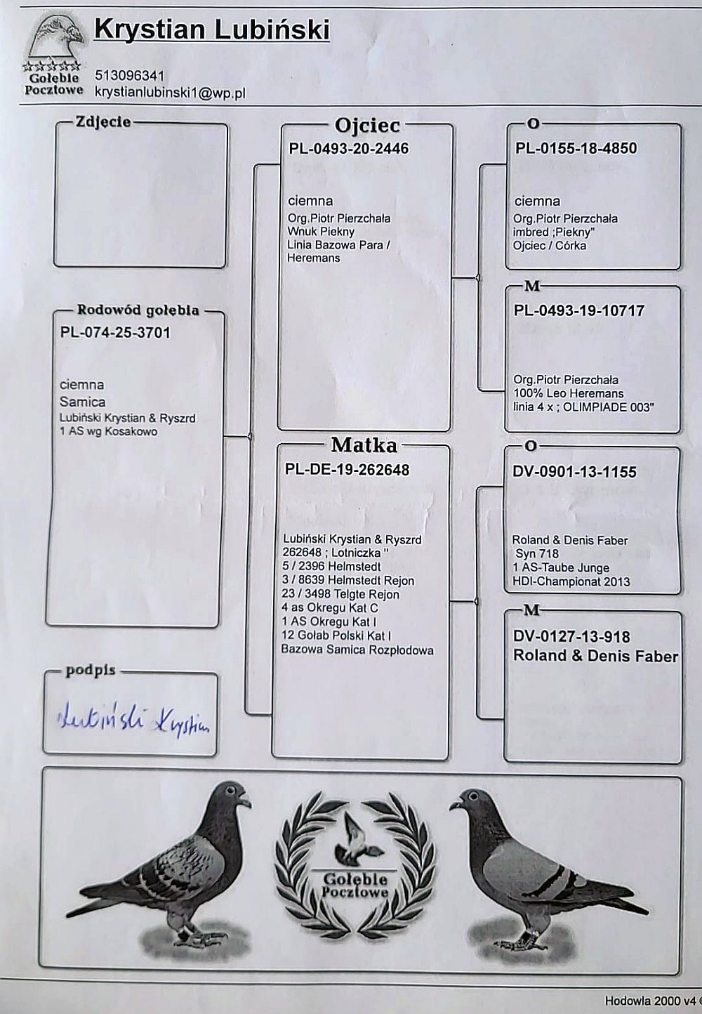 Lot | Data | Dystans [km] | Ilość gołębi | Pozycja | Prędkość [m/min] |