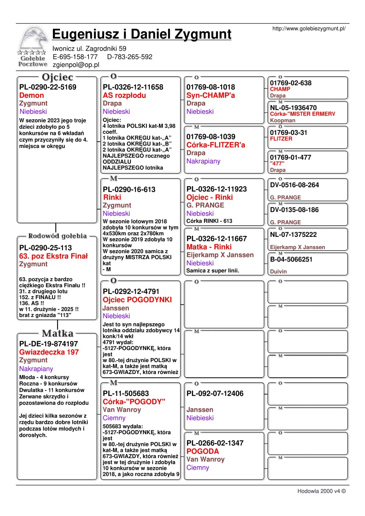 Lot | Data | Dystans [km] | Ilość gołębi | Pozycja | Prędkość [m/min] |