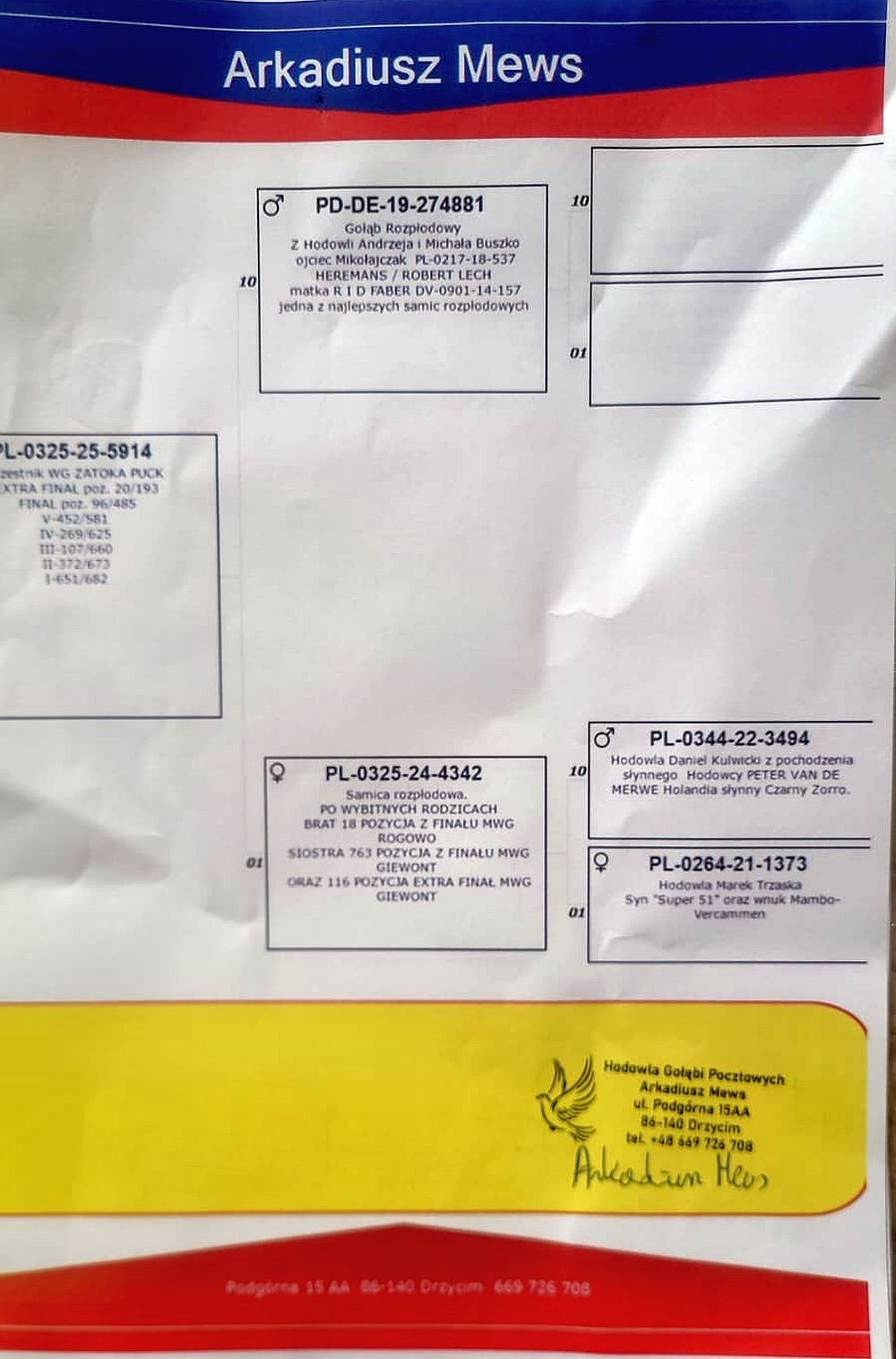 Lot | Data | Dystans [km] | Ilość gołębi | Pozycja | Prędkość [m/min] |