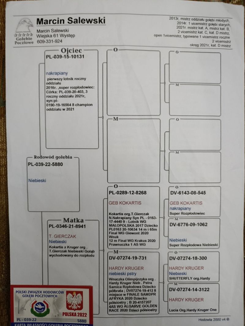 Płeć: samiec Hodowca - rasa: Marcin Salewski Zakończenie: 29.10.2025 godz. 20:54