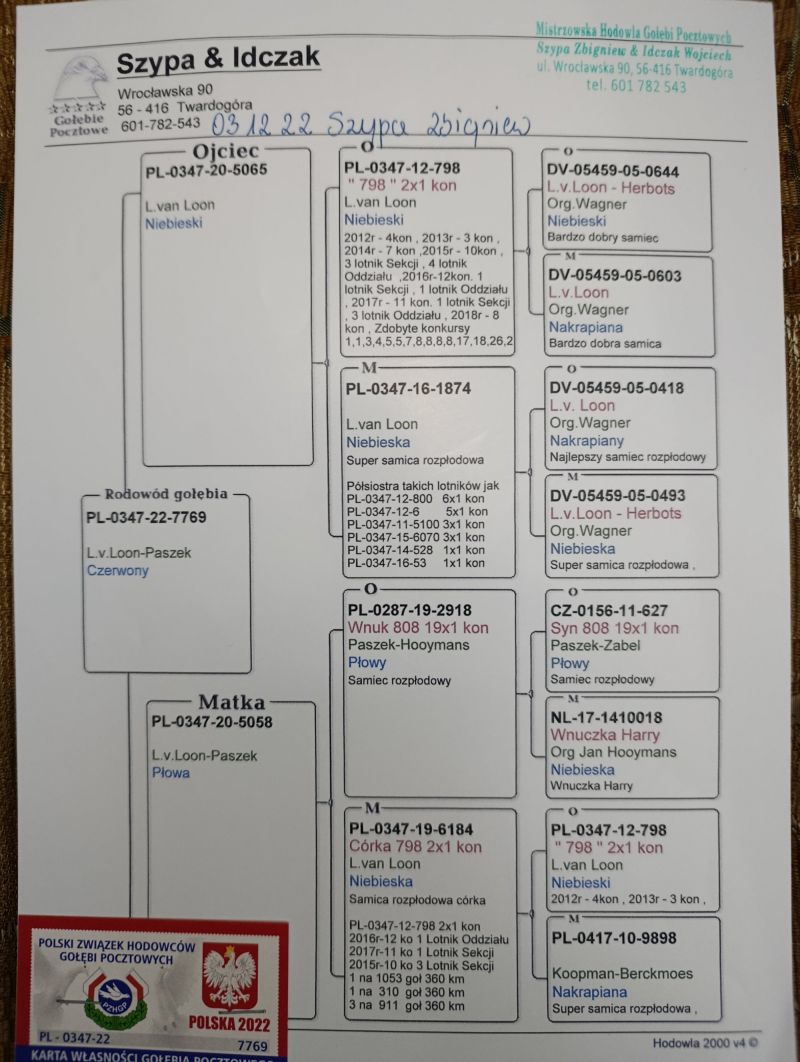PL-0163-25-5772 WG ROZTOCZE FINAŁ 368poz.505km Extra Finał 65poz 31 Drużyna 2x500km
