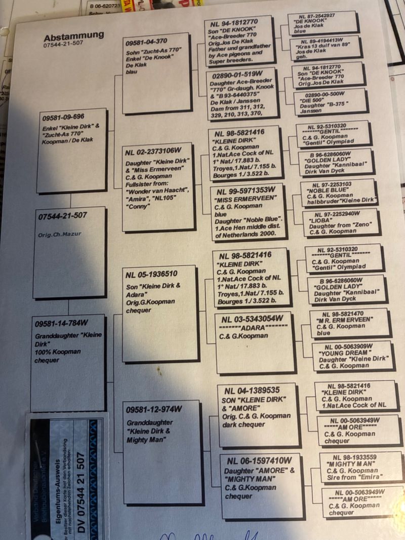 Piękny samior z gołębi Koopman z słynnej lini Klaine Dirk . Po zakończonej aukcji wpłata na konto,dowóz prywatnym kurierem koszt około 150zł.
