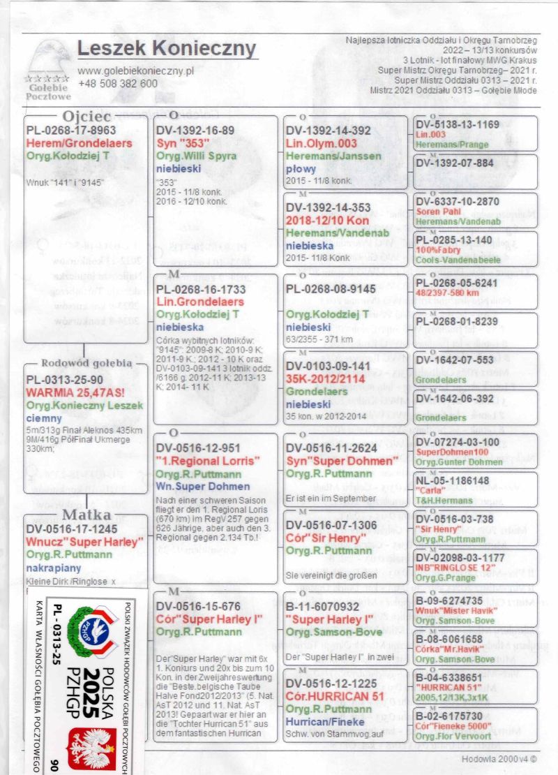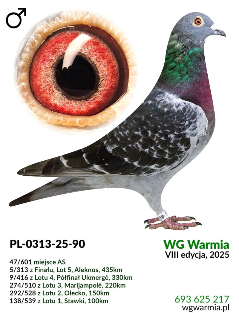 Uczestnik WG Warmia 2025, sezon VIII. Loty z kierunku północny wschód, Litwa. 5 z Finału, 47 AS. Szczegóły pochodzenia w rodowodzie.