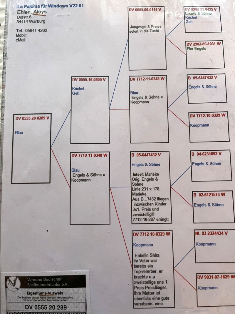 Oryginalny gołąb z hodowli Aloys Ehlen. Szczegóły pochodzenia w rodowodzie. Więcej informacji pod nr tel.: 797 946 815