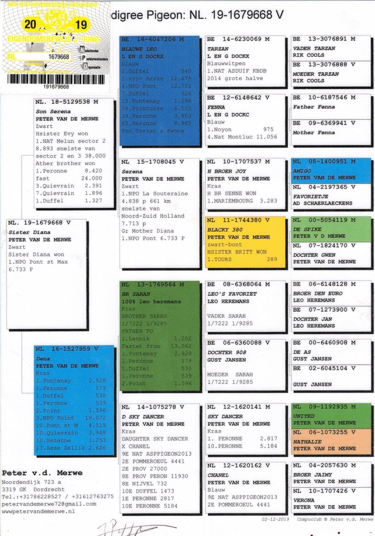 oryg. Peter v.d. Merwe, córka "Dena" Szczegóły pochodzenia w rodowodzie i załączonych materiałach. Więcej informacji o gołębiu pod nr tel.: 662 144 248. Transport gołębia na zasadach uzgodnionych ze sprzedającym.