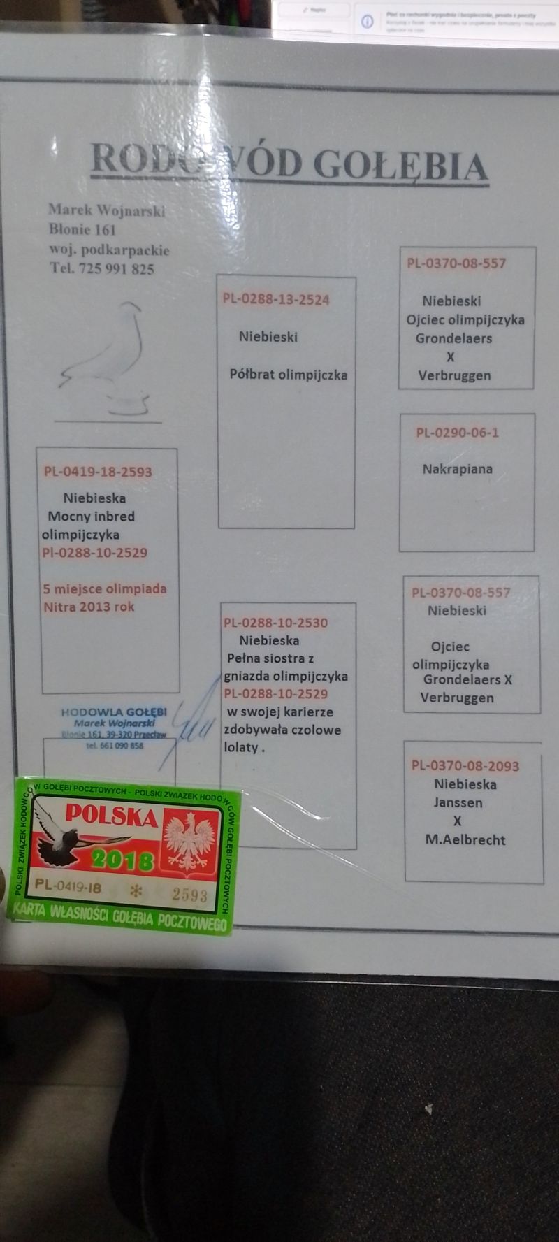 więcej info.w rodowodzie i na stronie Benzing Live. oneloftrace.live/lofts/260?season=2458&tab=flights