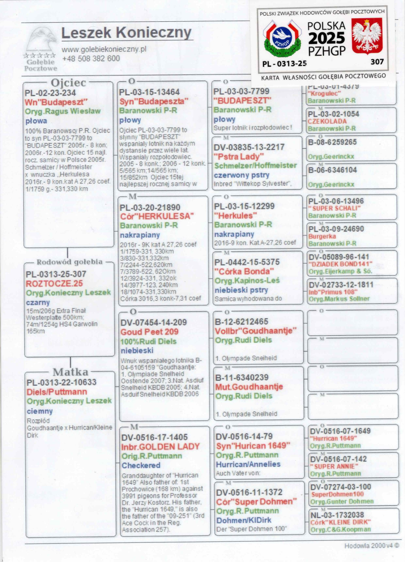PL-02898-25-6712 WG ROZTOCZE FINAŁ 138poz.505km Extra Finał 77poz.500km Półfinał 74poz.2x500km