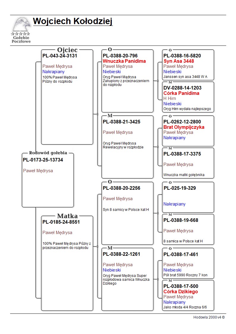 Oryginalny gołąb z hodowli Wojciecha Kołodzieja. Szczegóły pochodzenia w rodowodzie. Więcej informacji pod nr tel.: 608077136 **Wysyłka do 6 sztuk w jednej paczce za 150zł, przedpłata na konto.