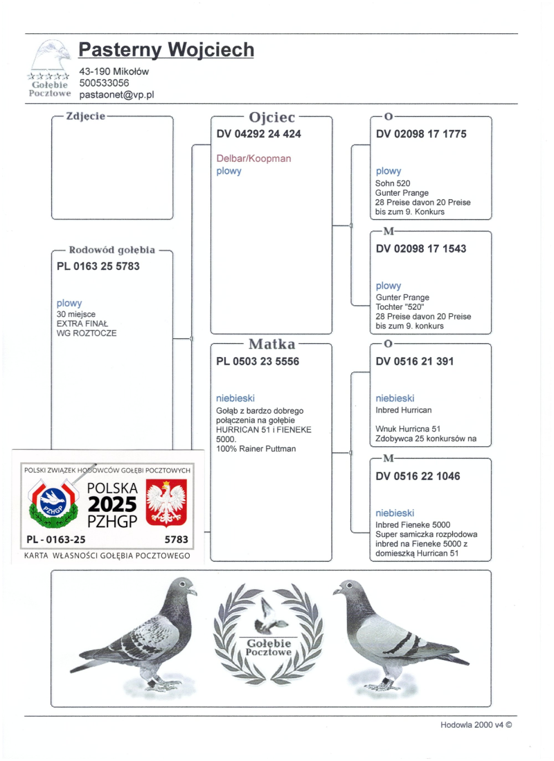 PL-0163-25-5783 WG ROZTOCZE FINAŁ 305poz.505km Extra Finał 30poz.500km 31Drużyna 2x500km