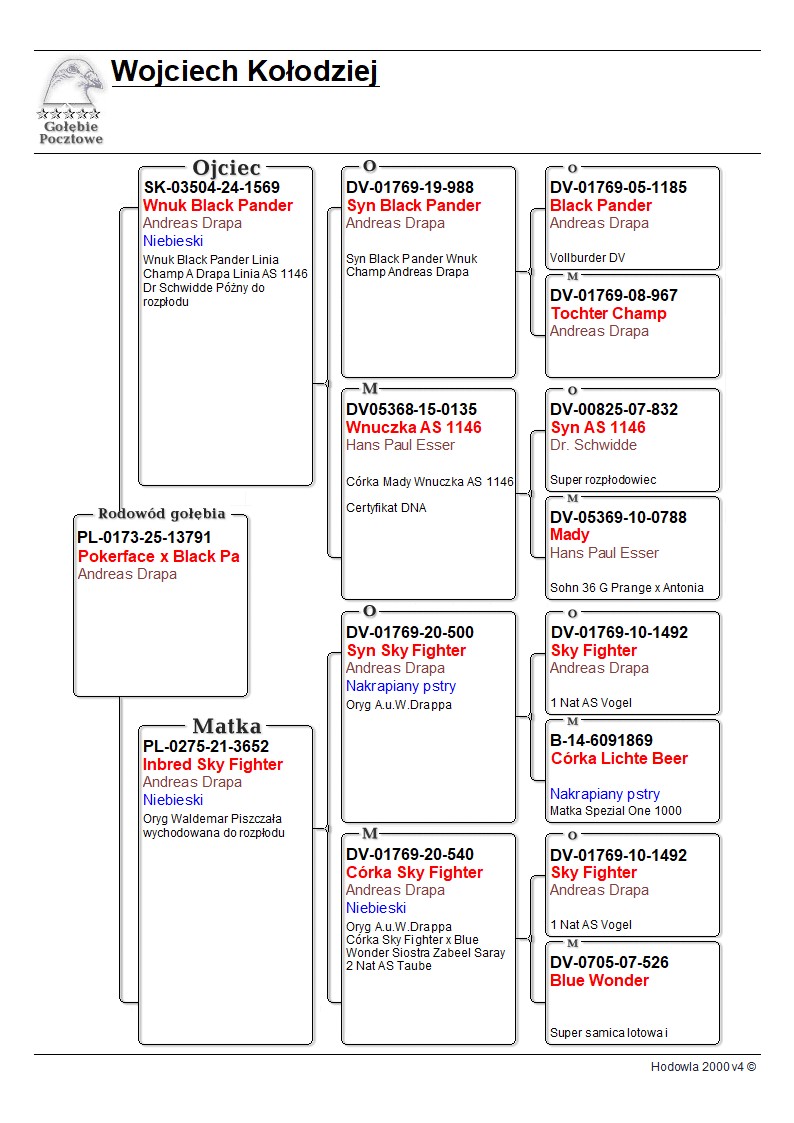 Oryginalny gołąb z hodowli Wojciecha Kołodzieja. Szczegóły pochodzenia w rodowodzie. Więcej informacji pod nr tel.: 608077136 **Wysyłka do 6 sztuk w jednej paczce za 150zł, przedpłata na konto.