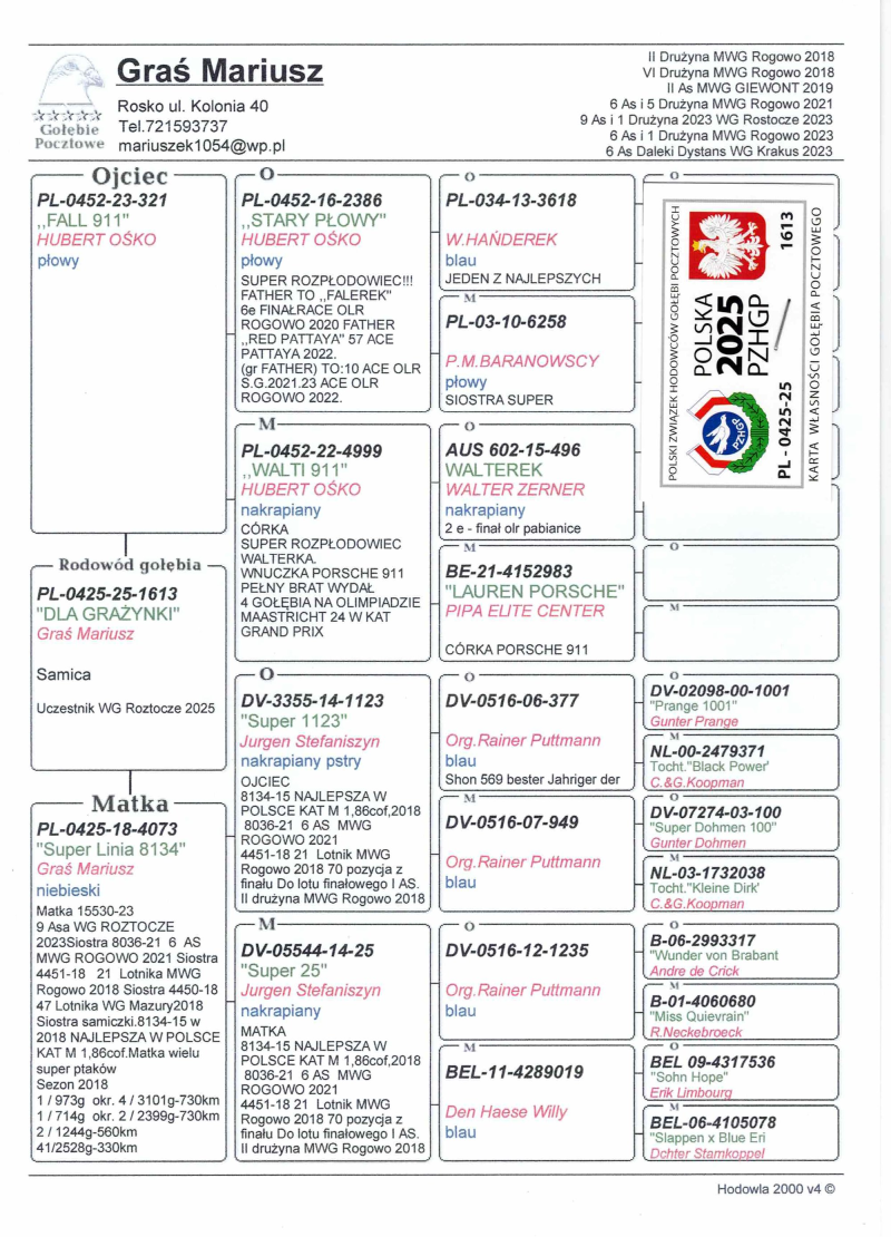 więcej info.w rodowodzie i na stronie Benzing Live. oneloftrace.live/lofts/260?season=2458&tab=flights