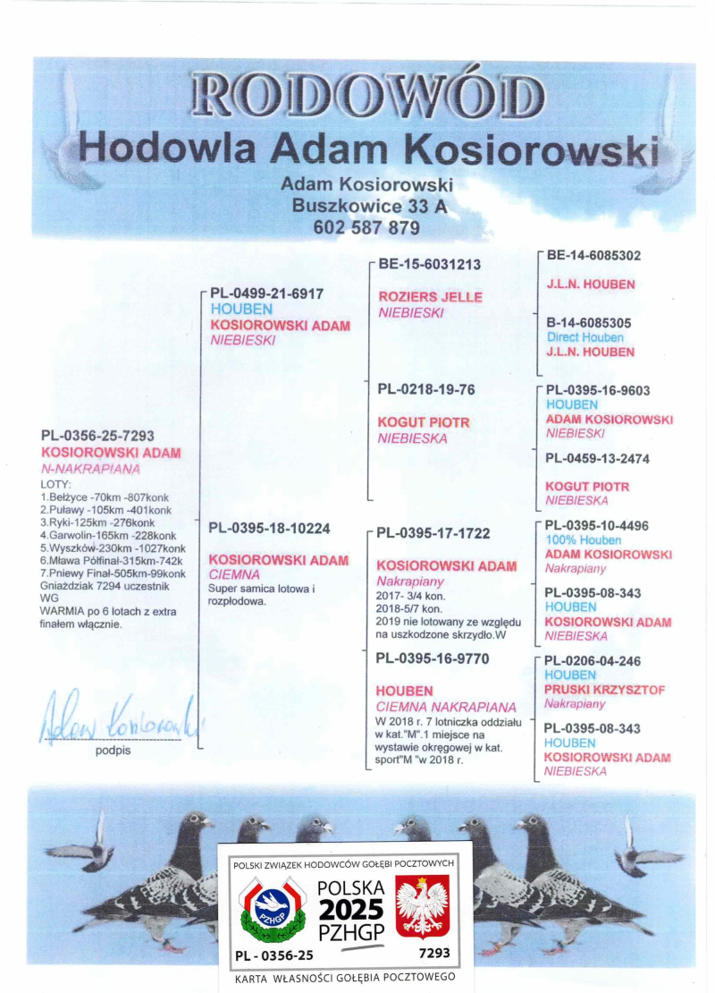 więcej info.w rodowodzie i na stronie Benzing Live. oneloftrace.live/lofts/260?season=2458&tab=flights