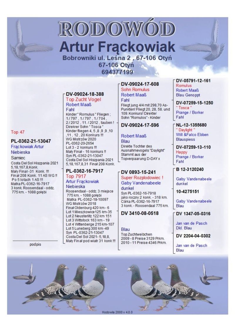 więcej info.w rodowodzie i na stronie Benzing Live. oneloftrace.live/lofts/260?season=2458&tab=flights