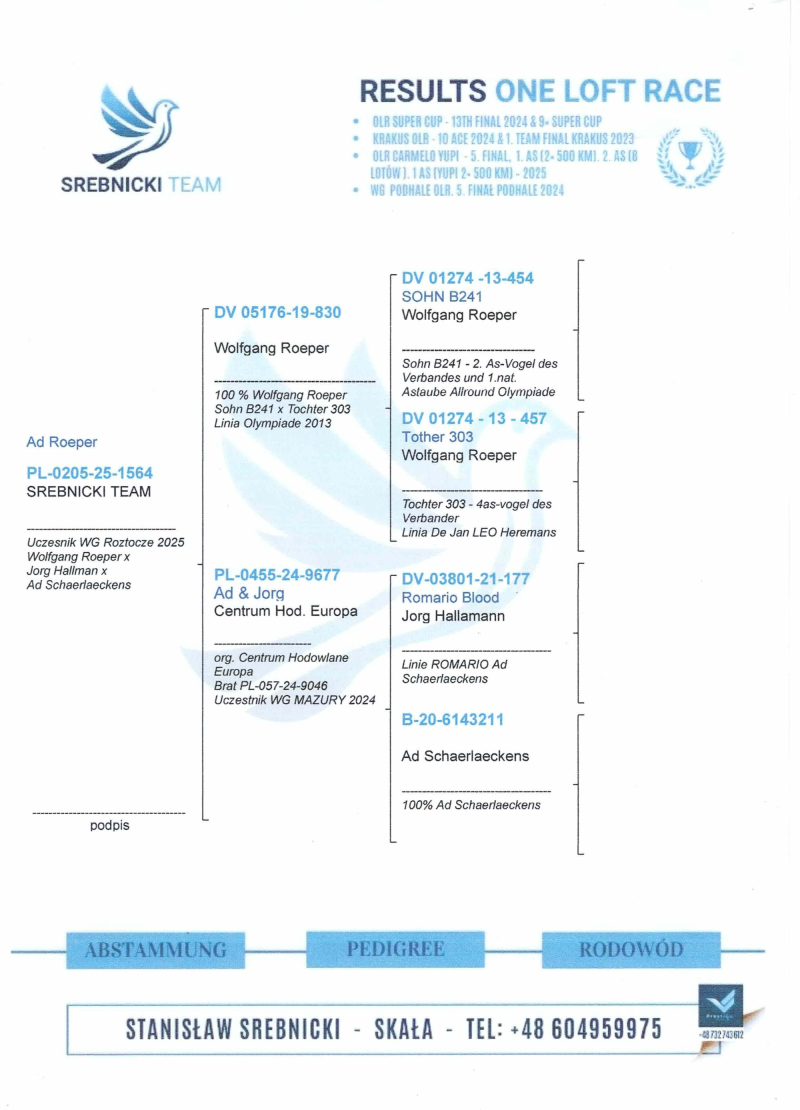 więcej info.w rodowodzie i na stronie Benzing Live. oneloftrace.live/lofts/260?season=2458&tab=flights
