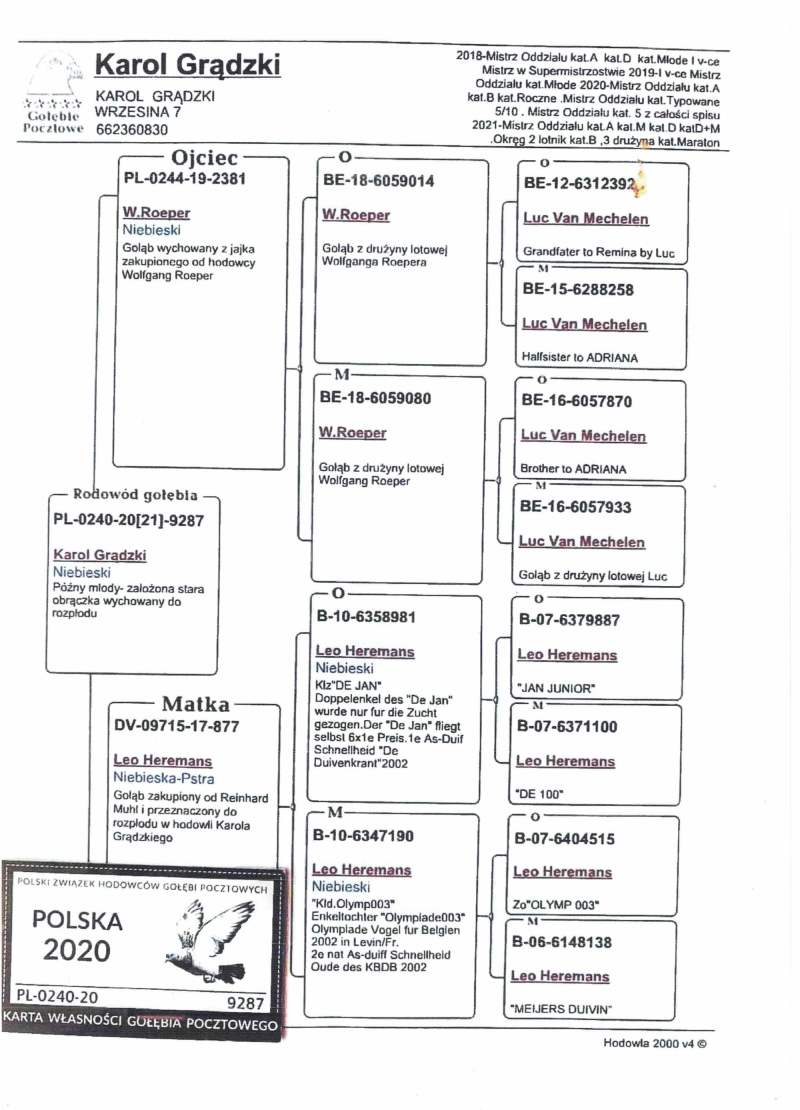 Opis: Gołąbek po całym bardzo wymagającym programie na WG ROZTOCZE 2025 loty z wiatrem pod wiatr i boczny w każdych warunkach sobie poradziły. 7 Lotów Konkursowych 1515 kkm zdobywając 306 miejsce z Finału 505km. więcej info.w rodowodzie i na stronie Benzing Live. oneloftrace.live/lofts/260?season=2458&tab=flights zapraszamy na sezon 2026. Dostawa wylicytowanego gołębia na terenie Polski 160zł.