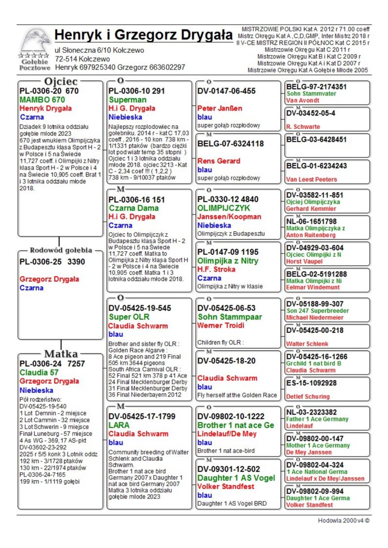 Płeć: młody gołąb Hodowca - rasa: GRZEGORZ DRYGAŁA Zakończenie: 2.11.2025 godz. 16:30