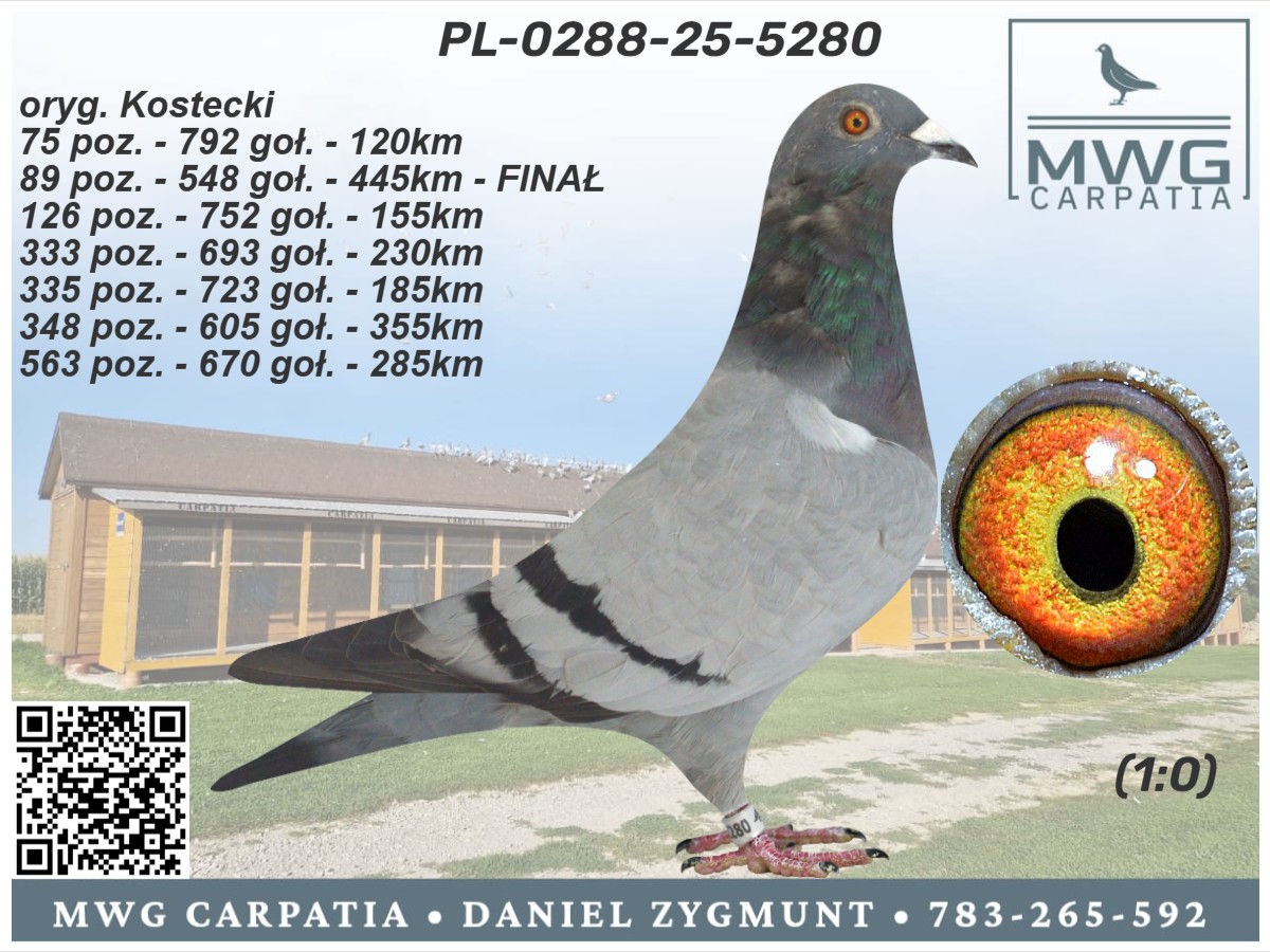 | Lot | Data | Dystans [km] | Ilość gołębi | Pozycja | Prędkość [m/min] |